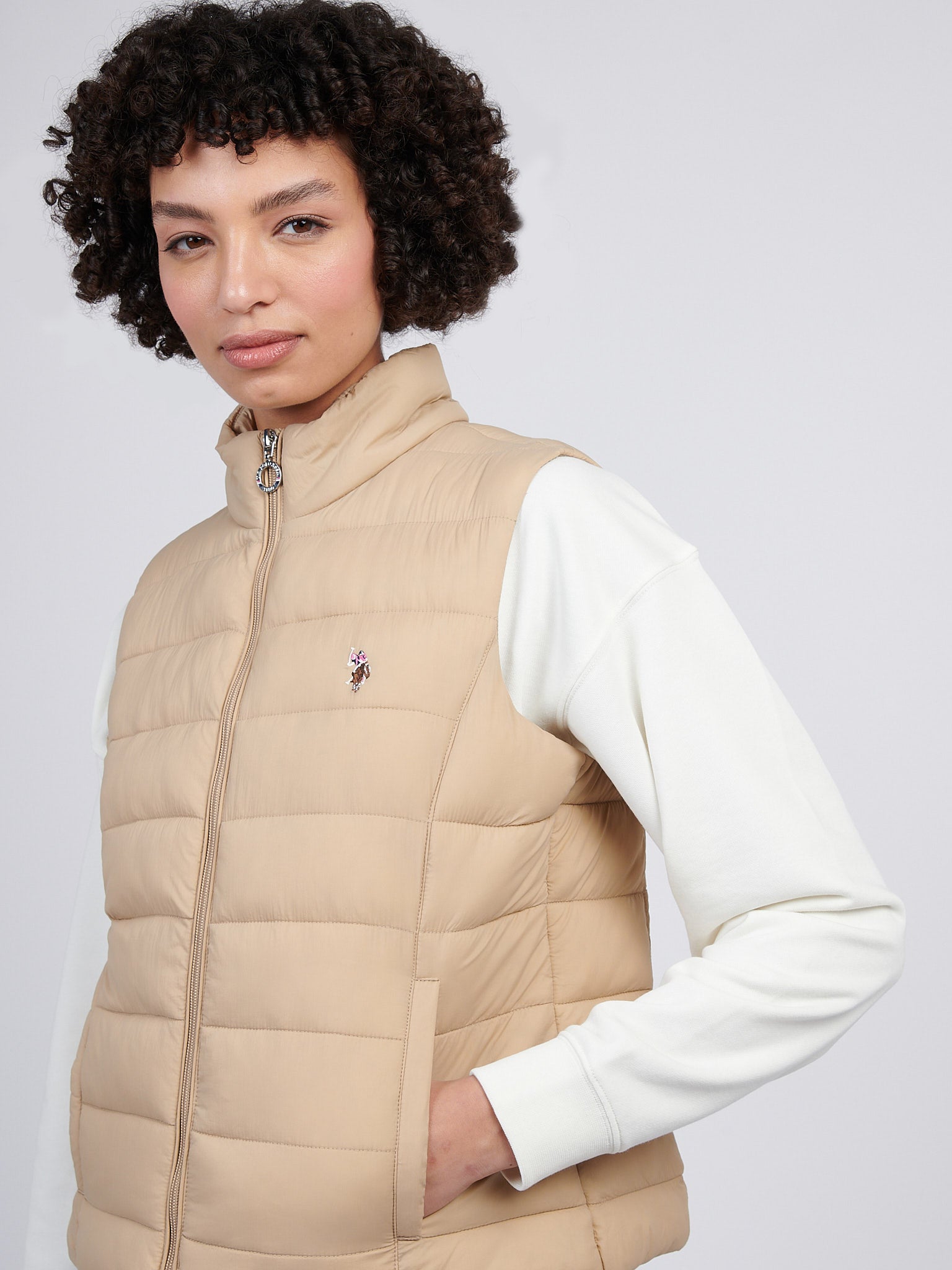 A style staple, this U.S. Polo Assn. Womens Lightweight Puffer Gilet is crafted in a water-resistant material and lightweight wadding.