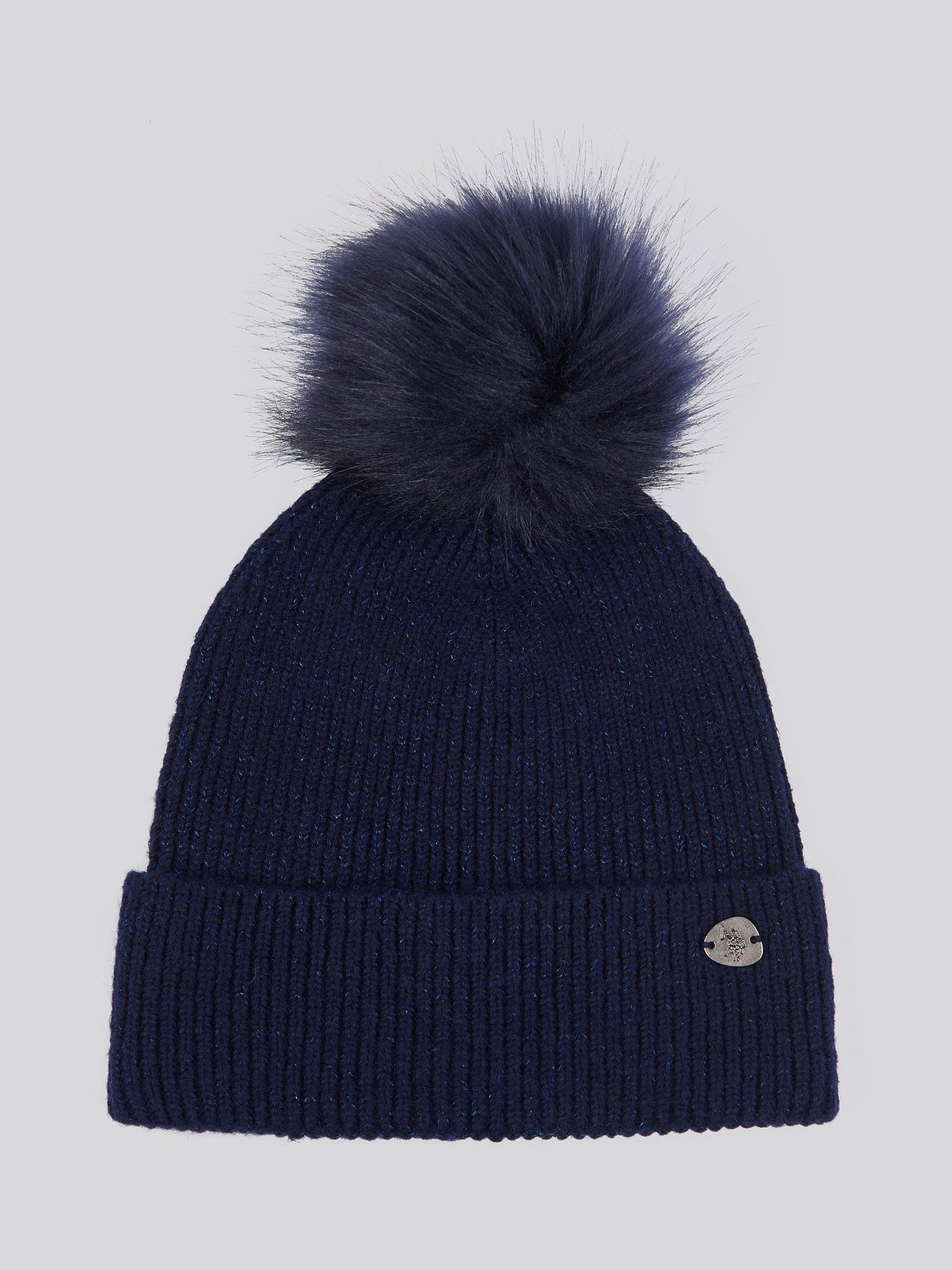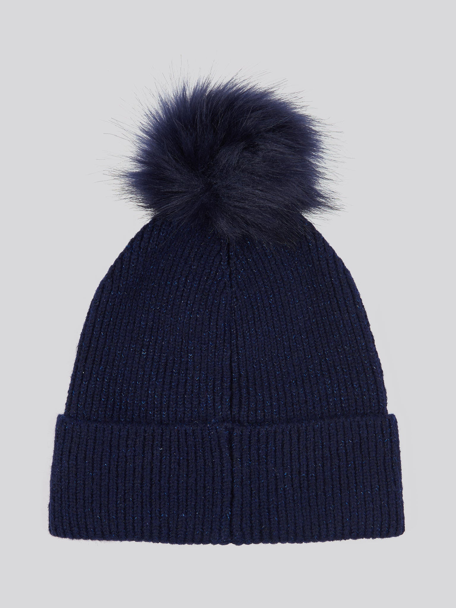 Womens Lurex Fur Bobble Beanie in Navy Iris