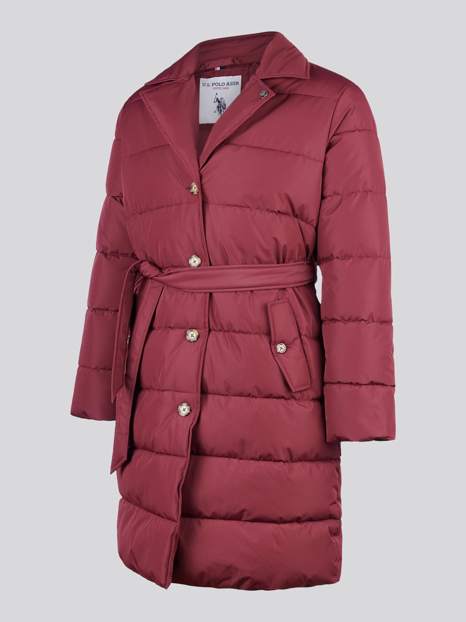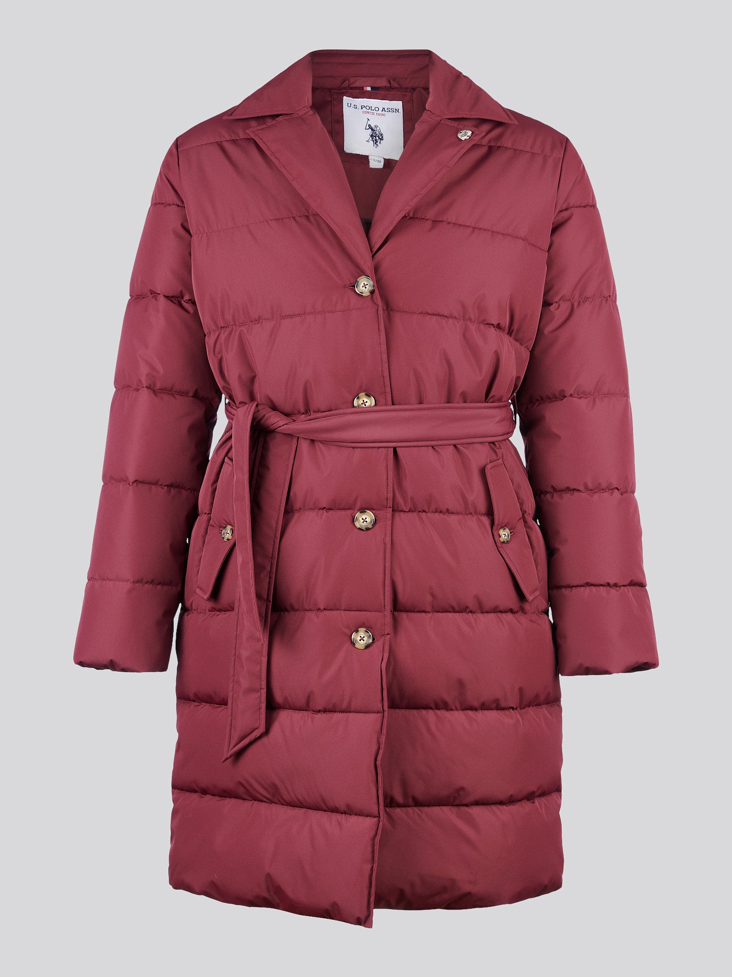 Elevate cold-weather dressing with the U.S. Polo Assn. Womens Puffer Trench Coat, a refined blend of classic design and functional warmth. With horizontal baffle quilting, buttoned details and a structured waist belt, this coat brings a modern edge to timeless outerwear. Wear it over a roll-neck and wide-leg trousers for a sophisticated seasonal look.