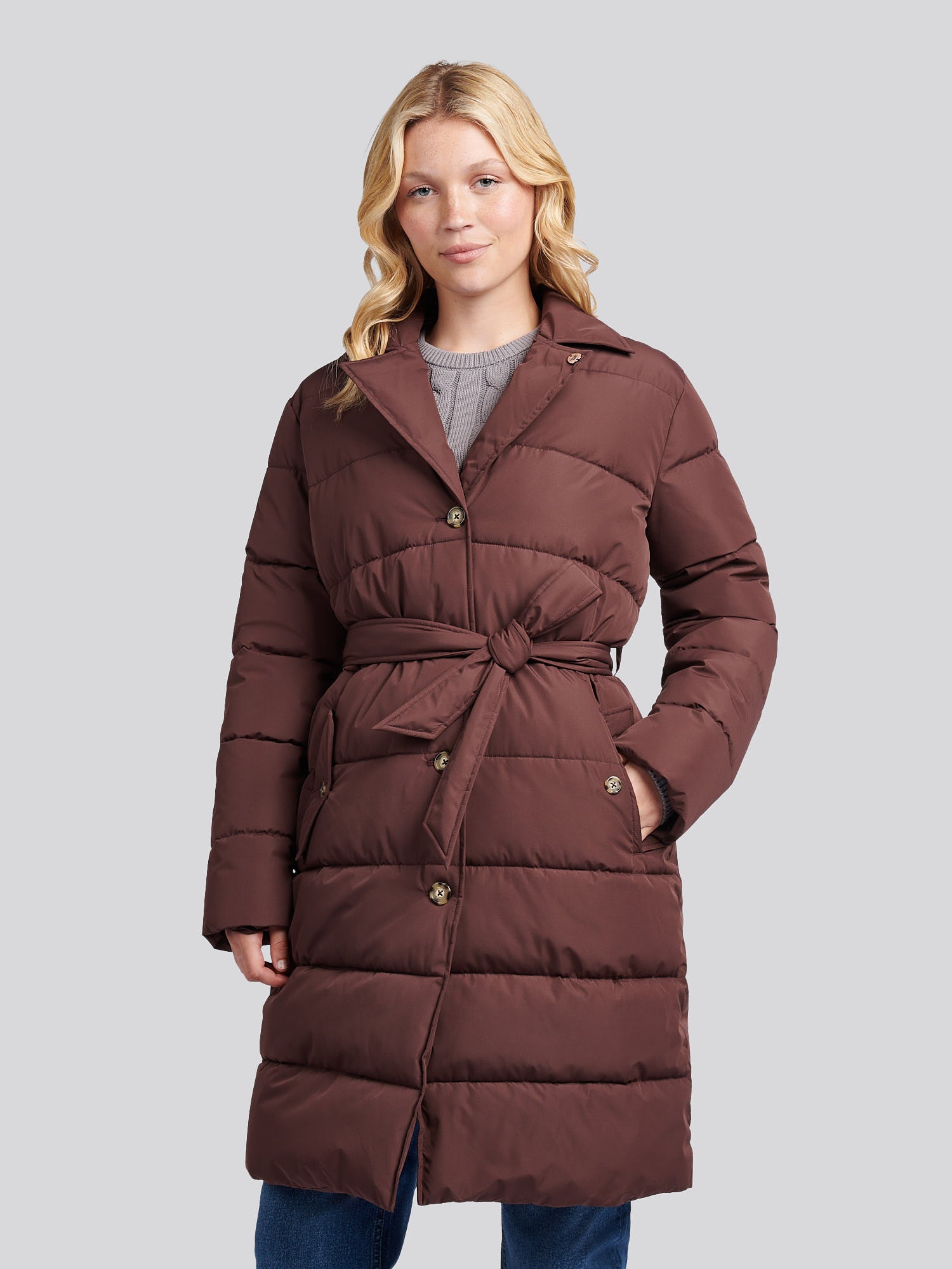 Elevate cold-weather dressing with the U.S. Polo Assn. Womens Puffer Trench Coat, a refined blend of classic design and functional warmth. With horizontal baffle quilting, buttoned details and a structured waist belt, this coat brings a modern edge to timeless outerwear. Wear it over a roll-neck and wide-leg trousers for a sophisticated seasonal look.
