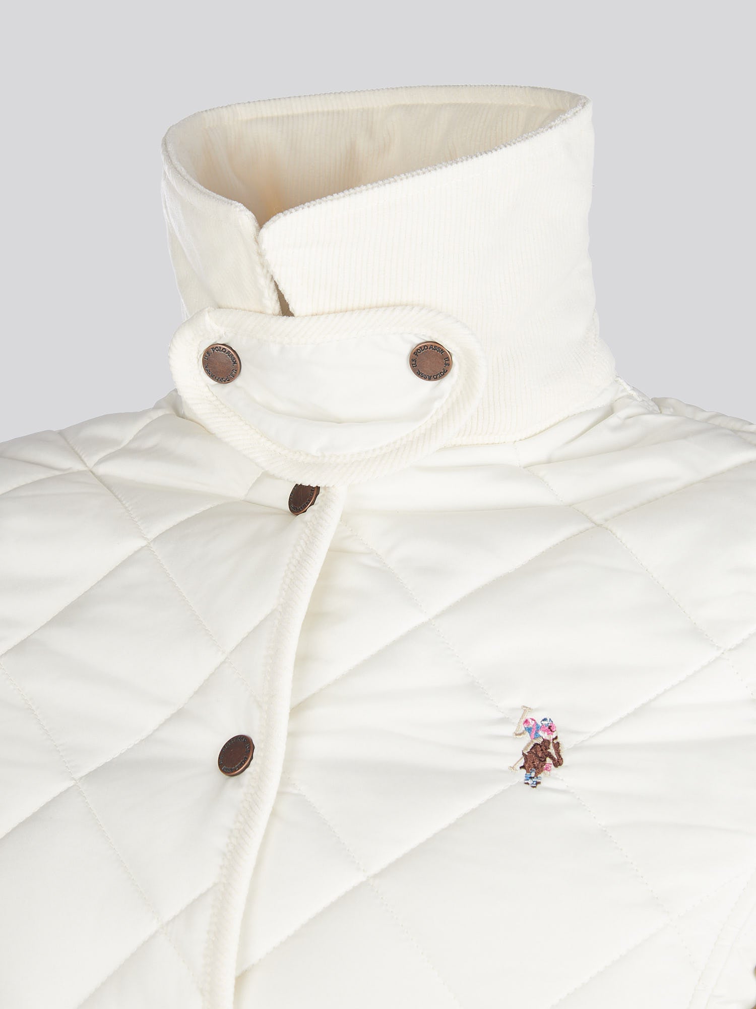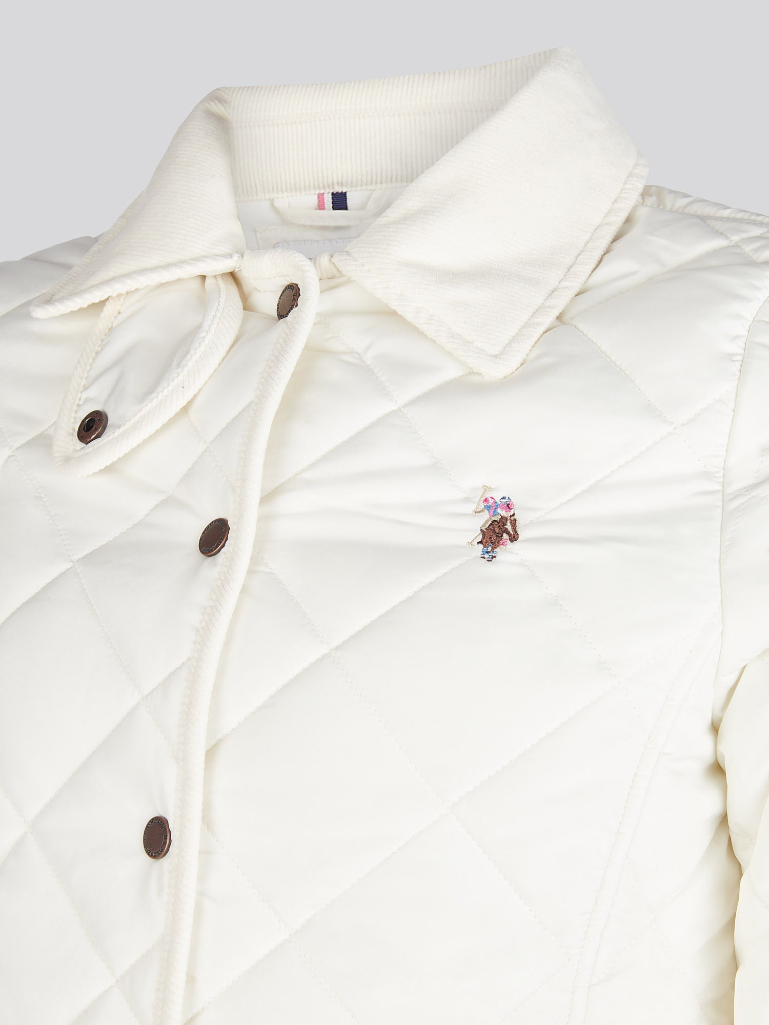 Timelessly tailored and country-inspired, the U.S. Polo Assn. Womens Quilted Country Jacket blends heritage design with everyday ease. Defined by its diamond quilting and corduroy trims, this piece delivers subtle refinement with a practical edge. Layer over knitwear and jeans for an elevated rural-to-urban look.