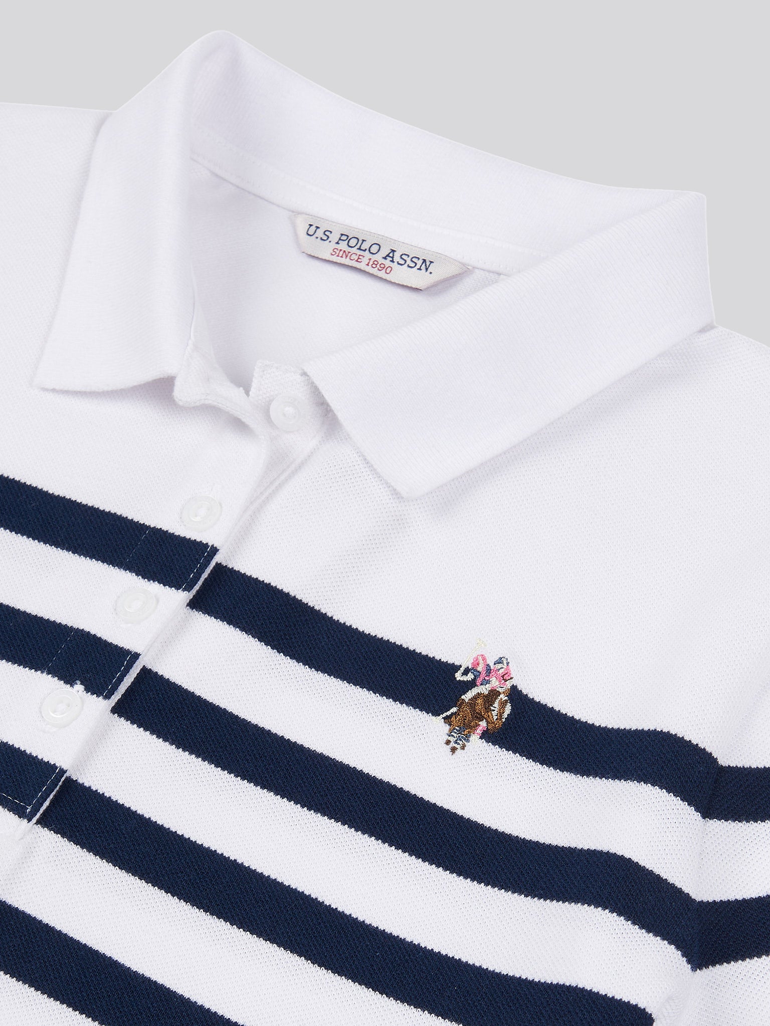 For a timeless piece, the classic womens polo from U.S. Polo Assn. is now in stripe for an easy yet sophisticated look.