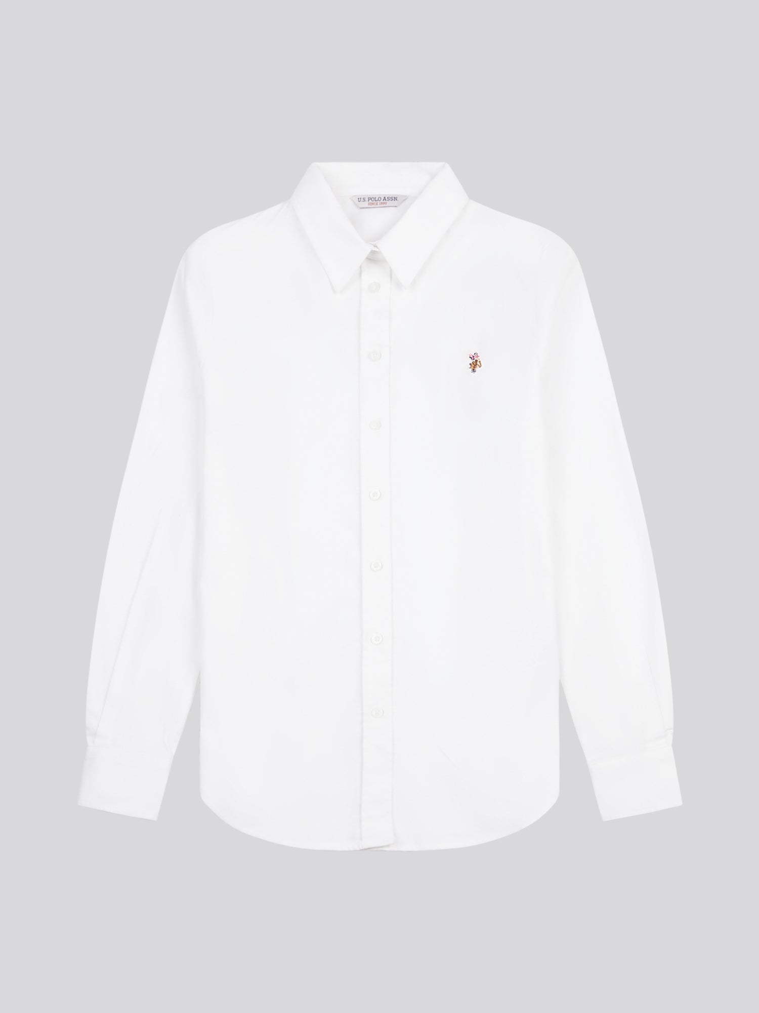 Embrace classic style with the U.S. Polo Assn. Womens Stretch Classic Fit Oxford Shirt. Designed to blend heritage and modern elegance, this shirt offers a timeless, tailored silhouette ideal for both formal and casual occasions. Pair it with trousers for an effortlessly refined look.