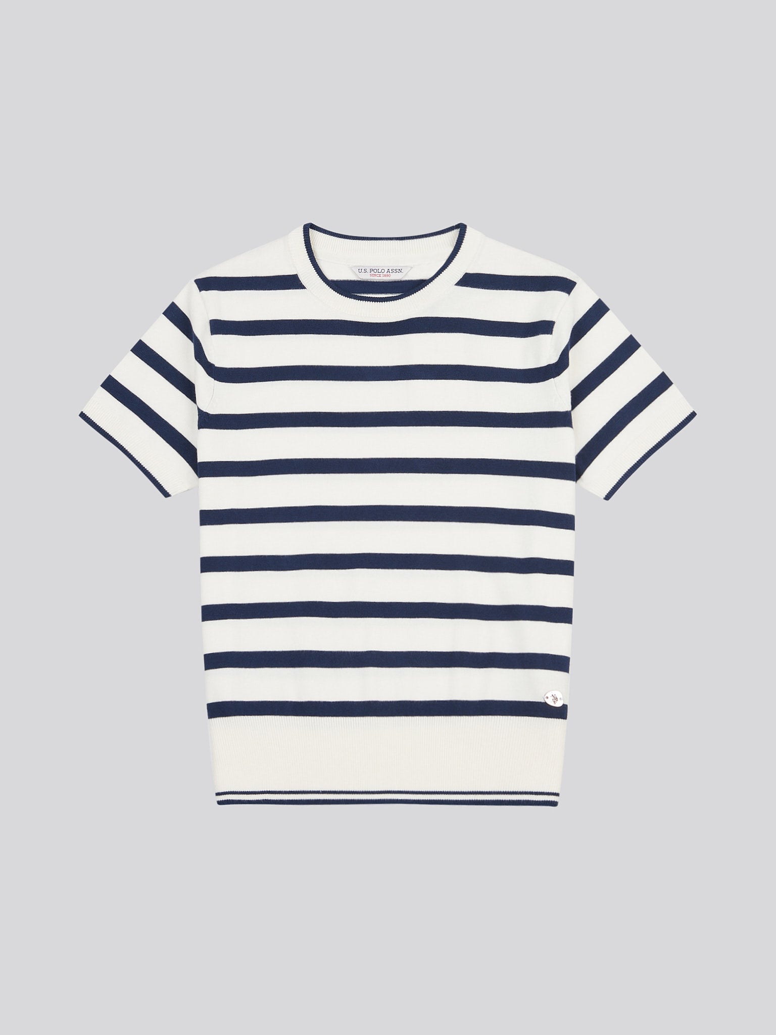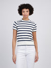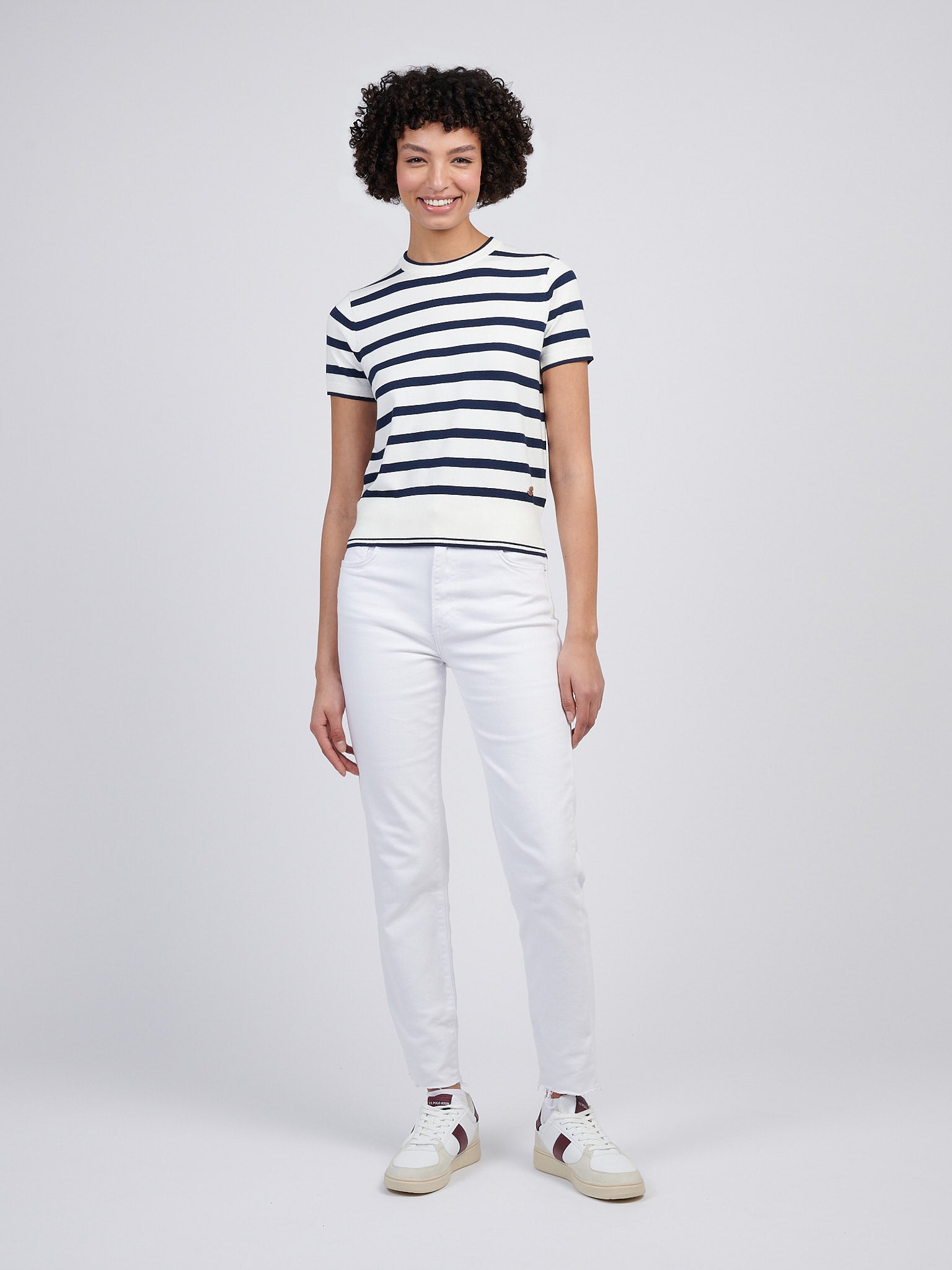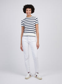 Womens Stripe Crew Neck Short Sleeve Jumper in Marshmallow