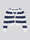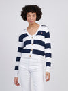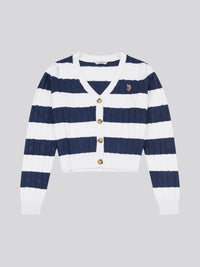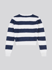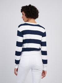 Womens Stripe Loose Cable Knit Cardigan in Navy Iris