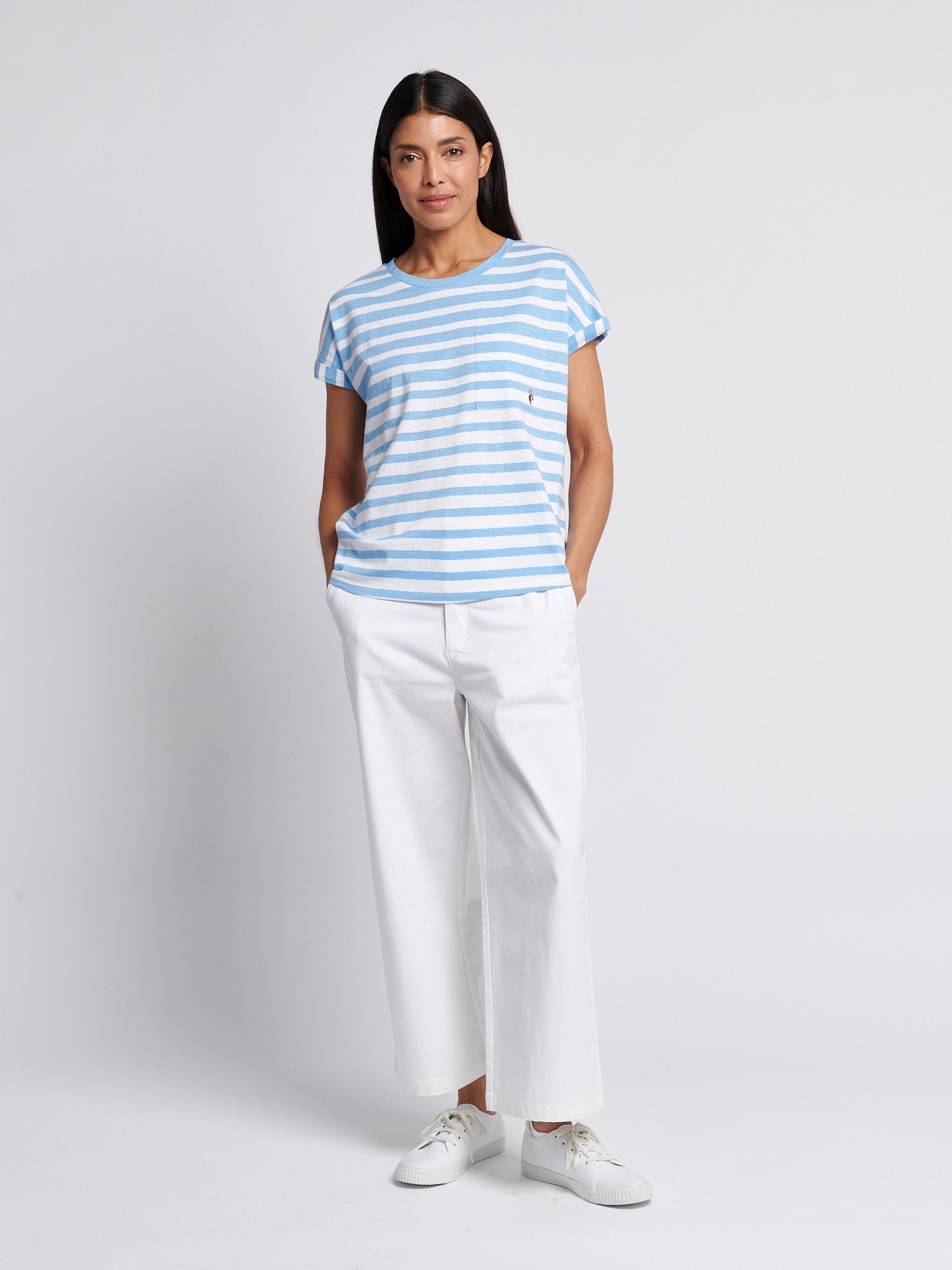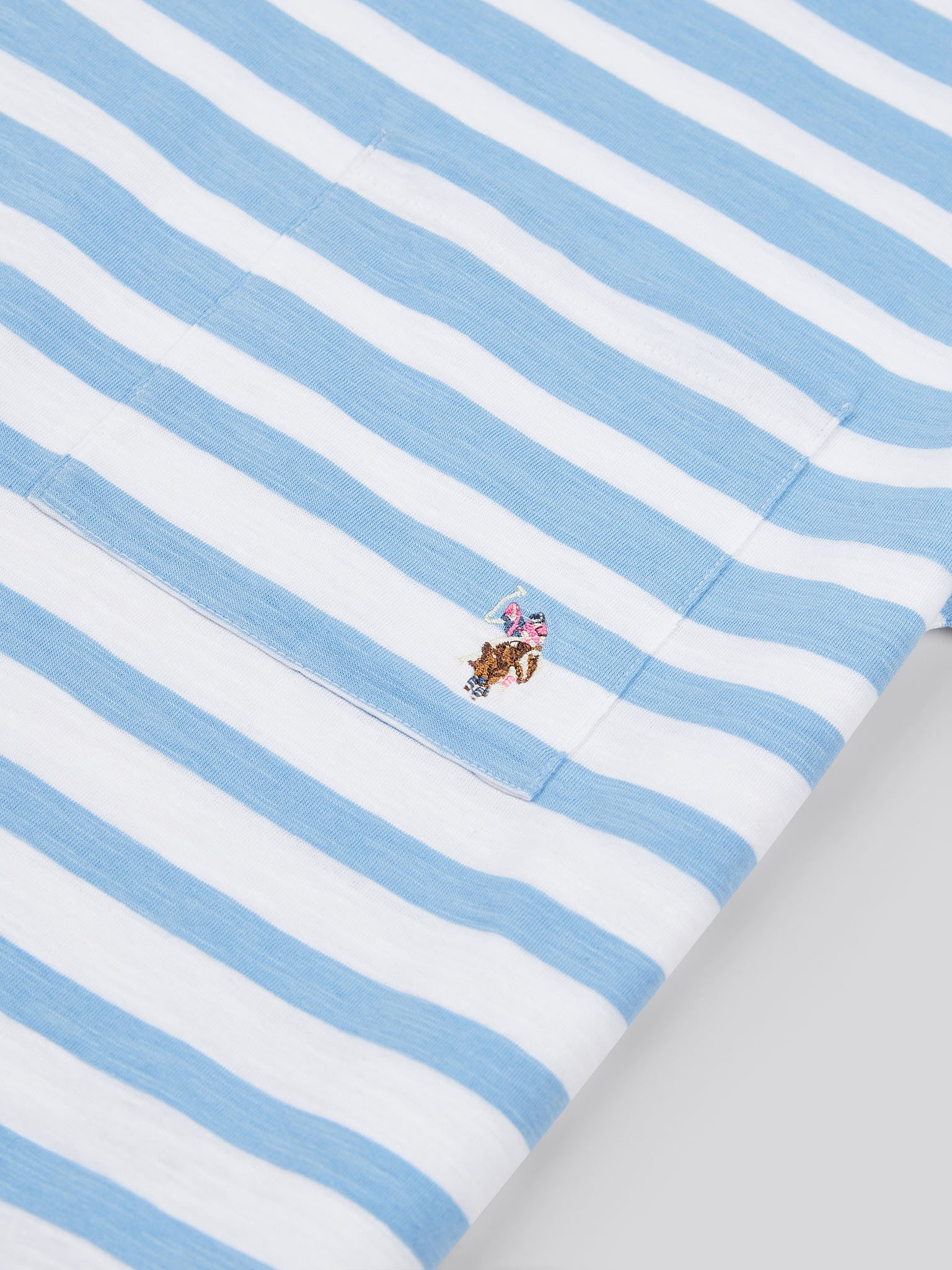 Embrace effortless style with the U.S. Polo Assn. Womens Stripe Slub T-Shirt, featuring a textured stripe design that adds a touch of sophistication to casual wear. Pair with jeans or shorts for a versatile look that exudes relaxed elegance.