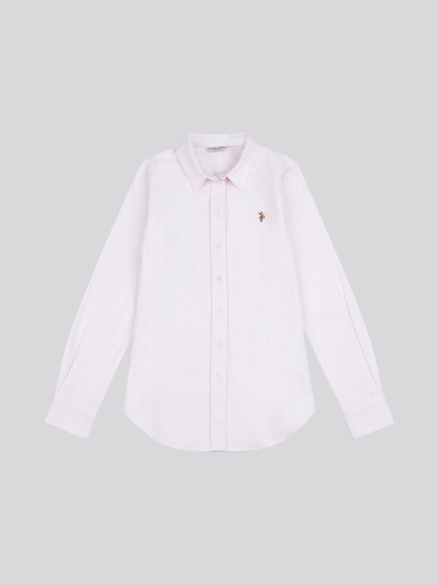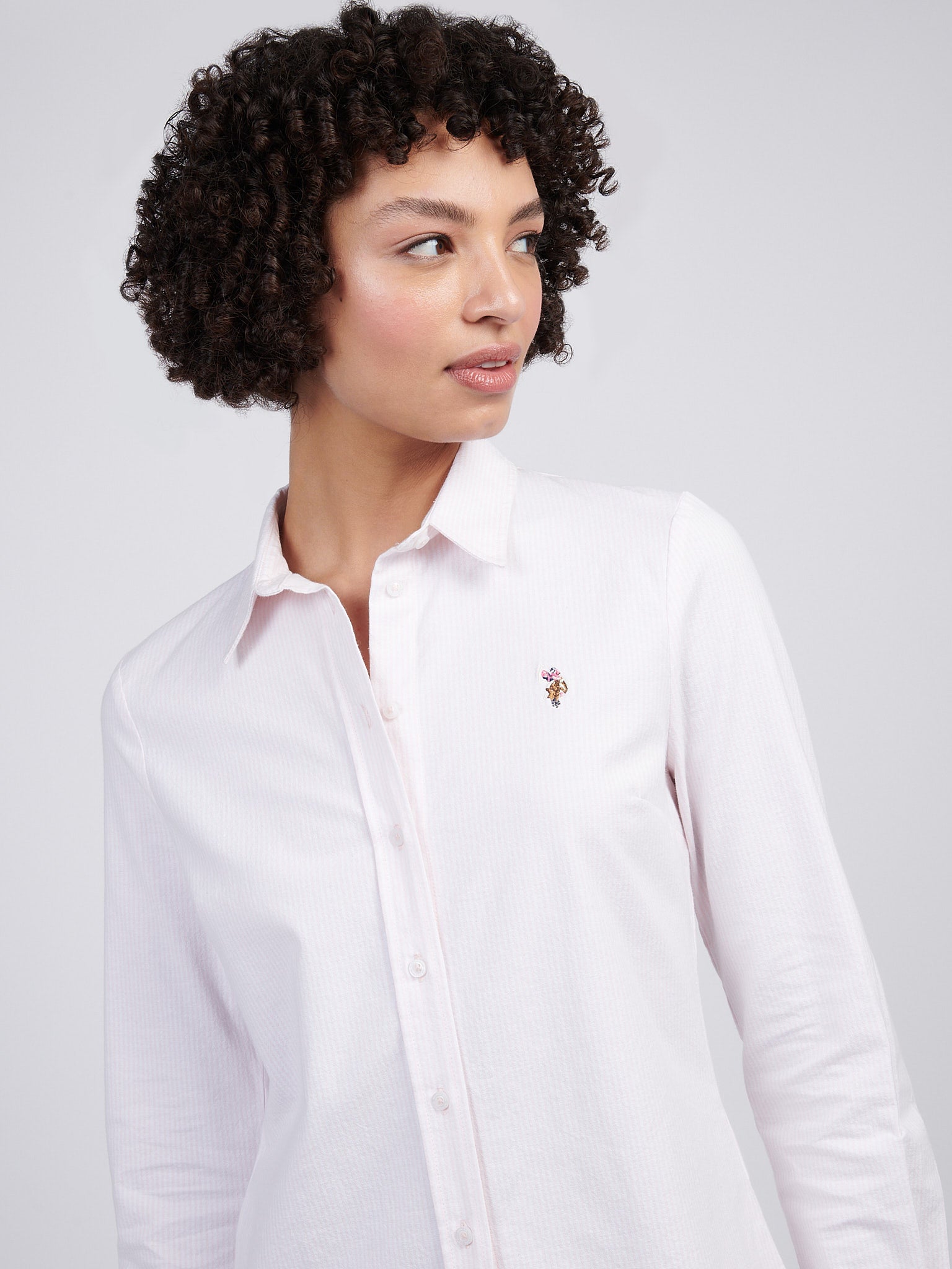 Womens Stripe Stretch Classic Fit Oxford Shirt in Crystal Rose
