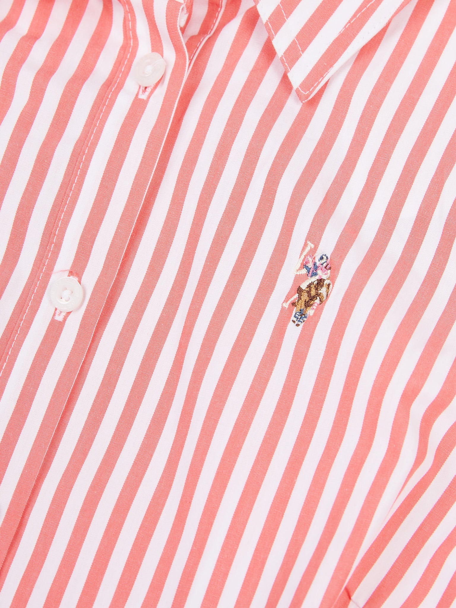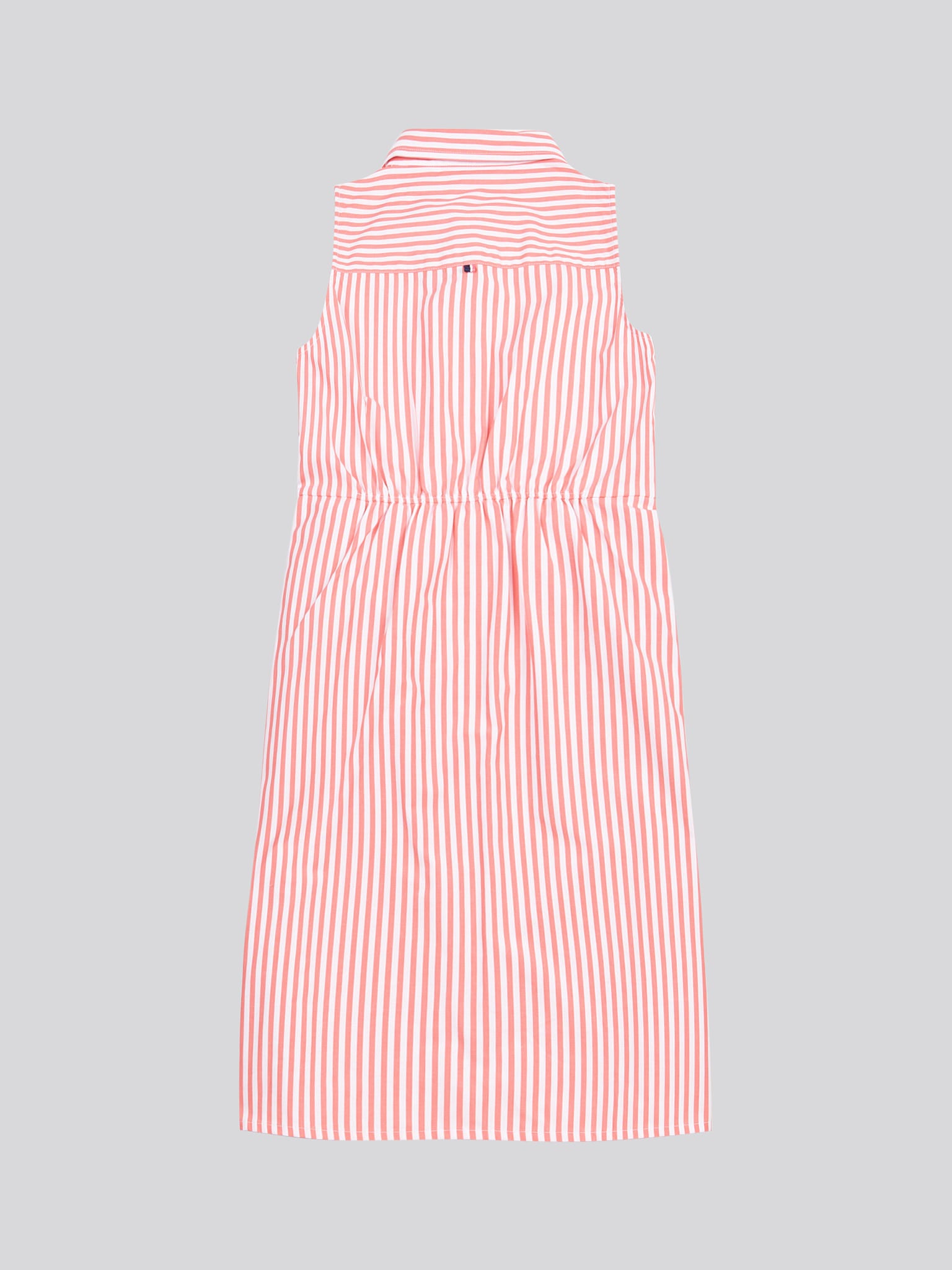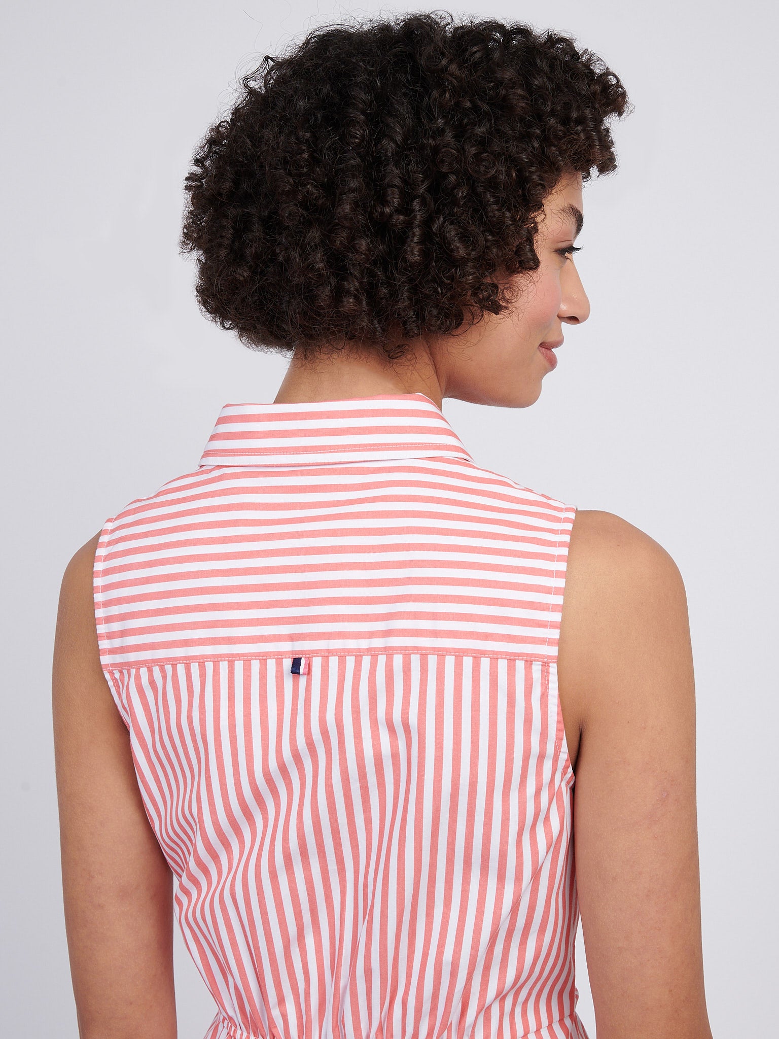 Womens Stripe Tie Waist Shirt Dress in Sugar Coral