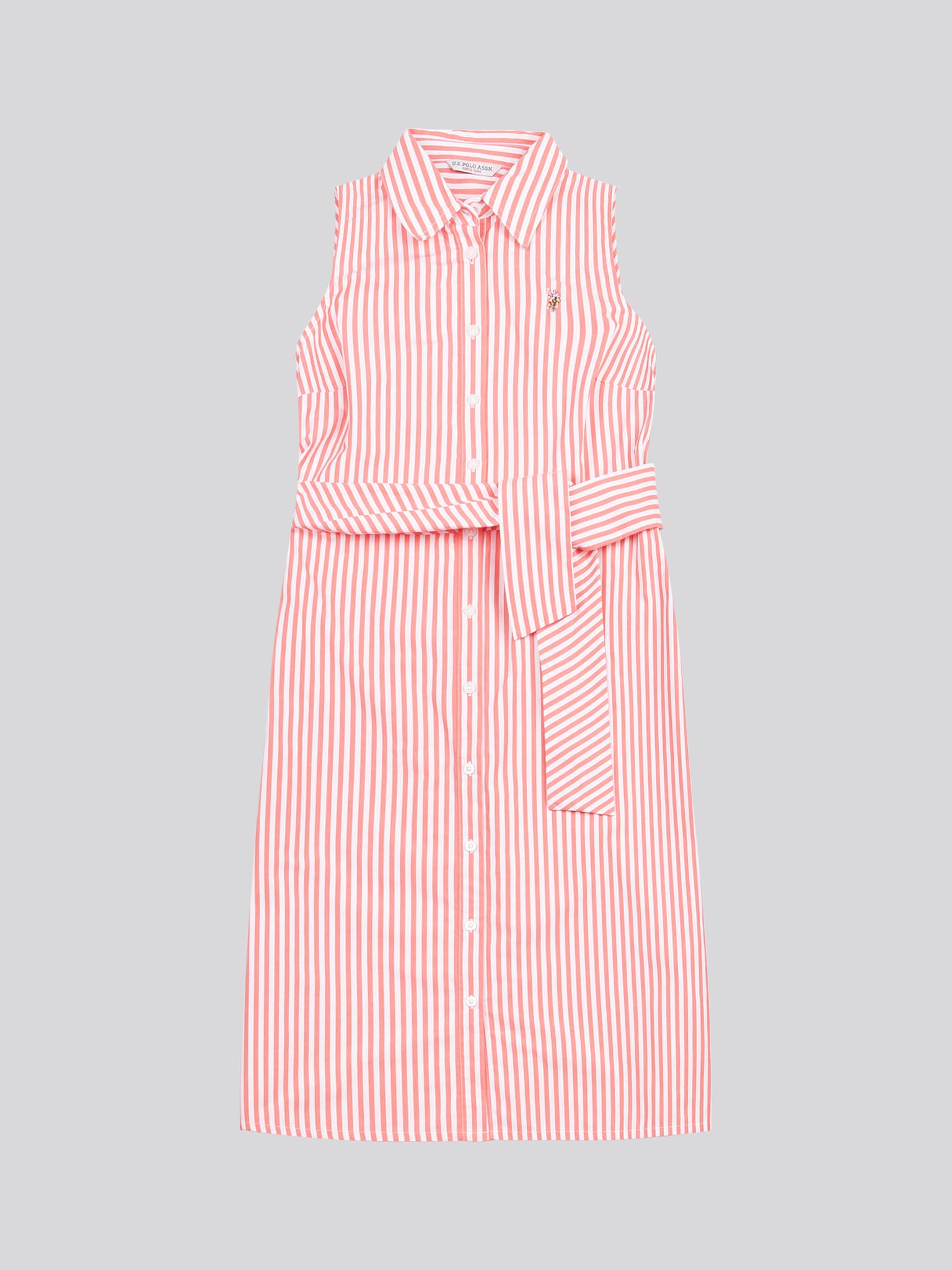 Exhibiting integrated style, the U.S. Polo Assn. Womens Striped Sleeveless Shirt Dress is a fresh offering for those warmer spring summer days.
