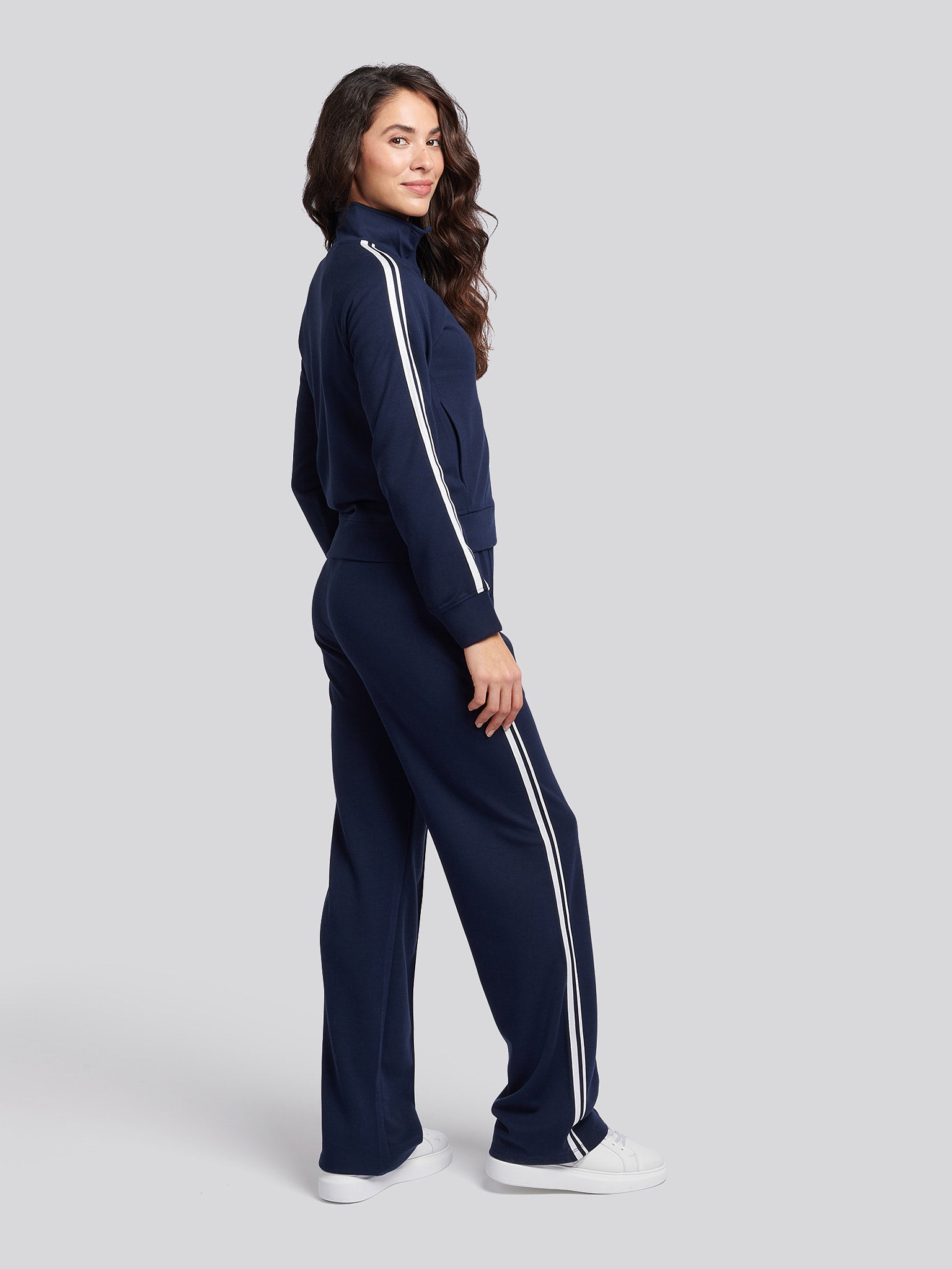 Womens Stripe Trim Zip Through Tracksuit Top in Navy Iris
