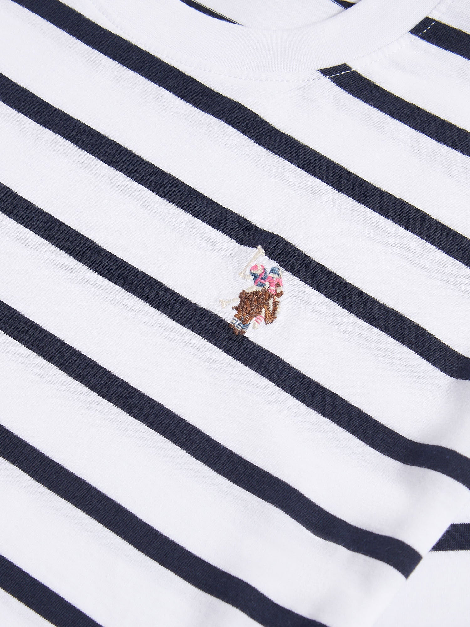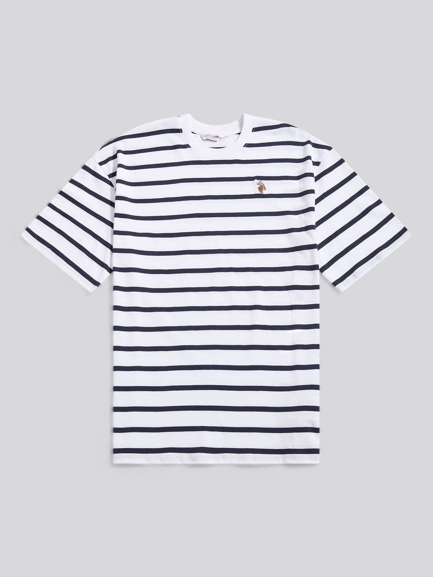 Experience casual sophistication with the U.S. Polo Assn. Womens Tri-Stripe Oversized T-Shirt. Designed in a relaxed fit with bold tri-colour stripes, this tee brings an elevated twist to everyday comfort. Pair it with jeans or leggings for a versatile, laid-back look that stands out.