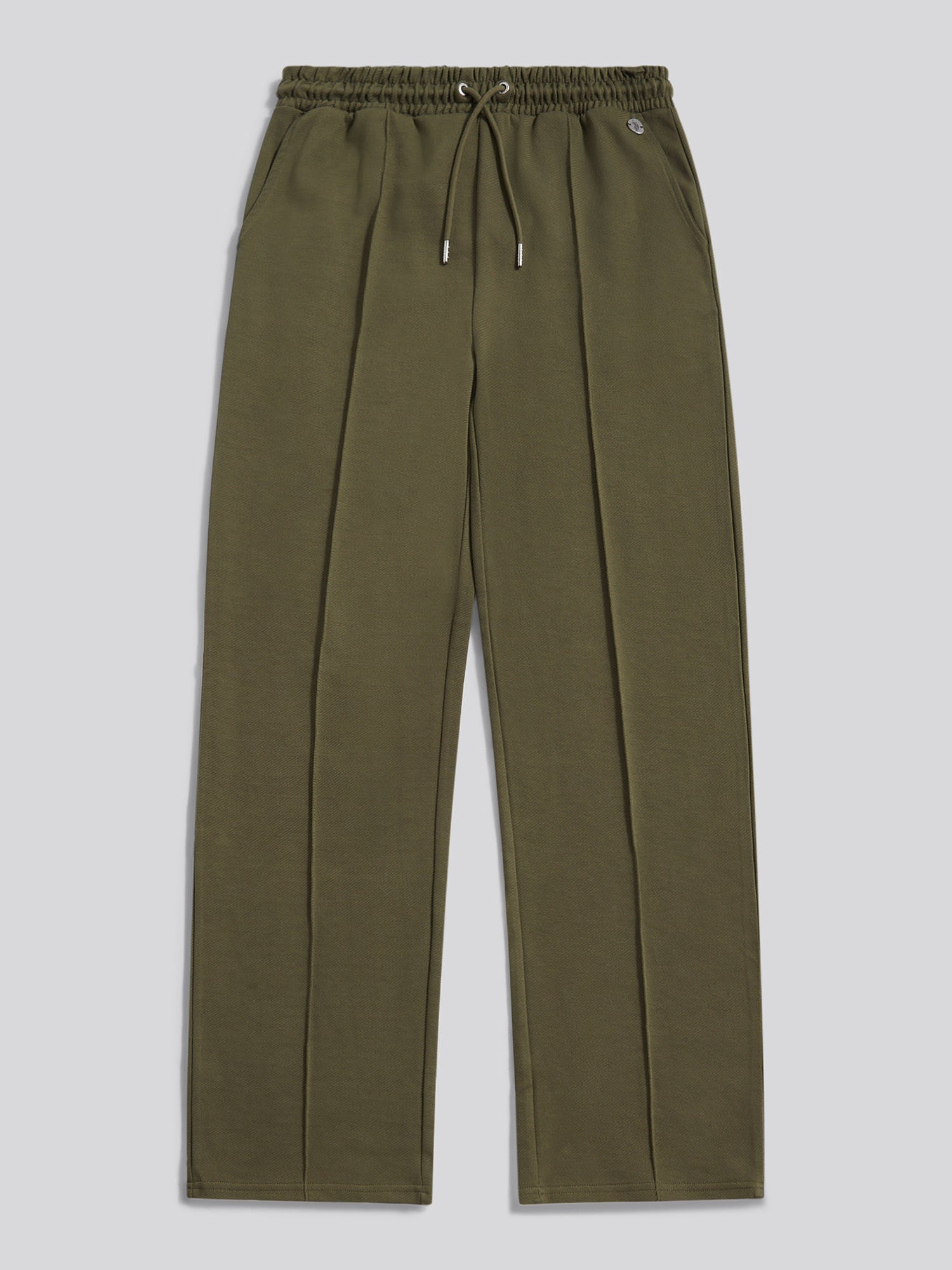 Womens Twill Texture Wide Leg Jogger in Kalamata Green