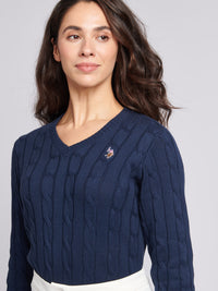 Perfect transitional dressing with the U.S. Polo Assn. Womens V-Neck Cable Knit Jumper.