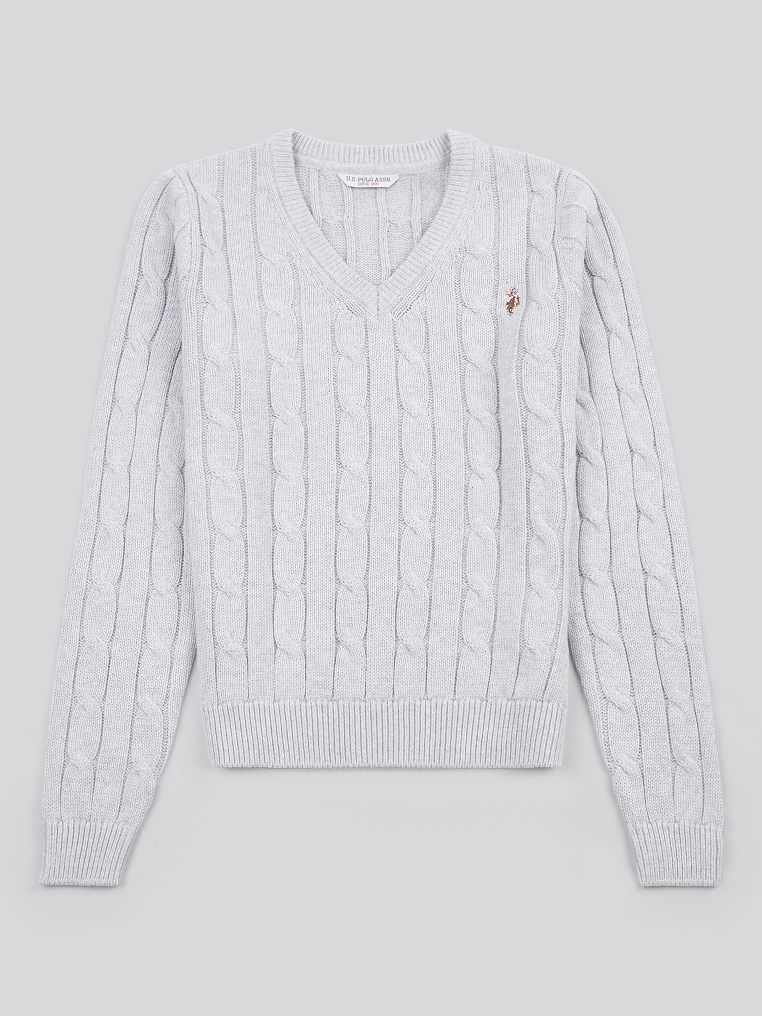 Perfect transitional dressing with the U.S. Polo Assn. Womens V-Neck Cable Knit Jumper.
