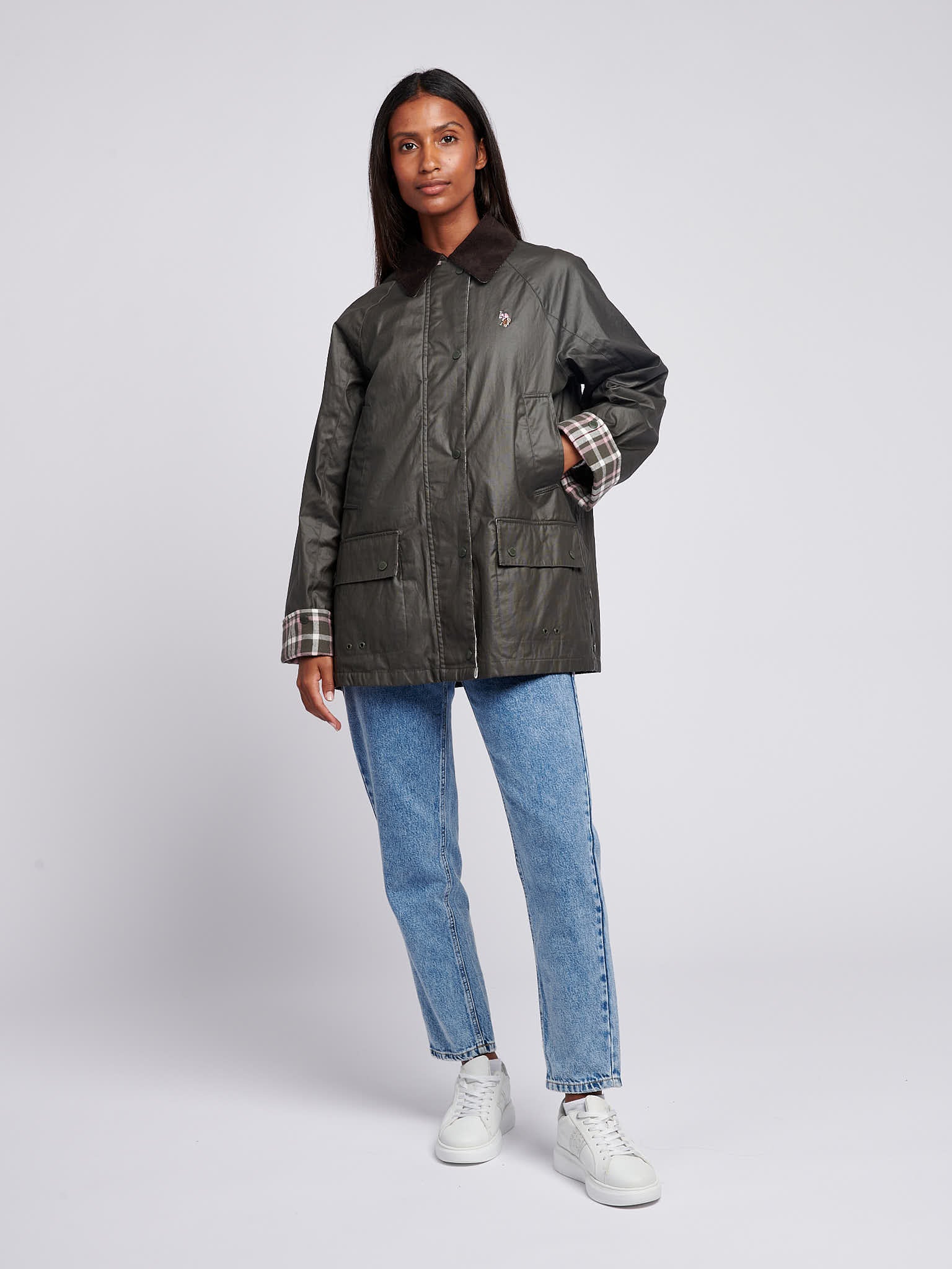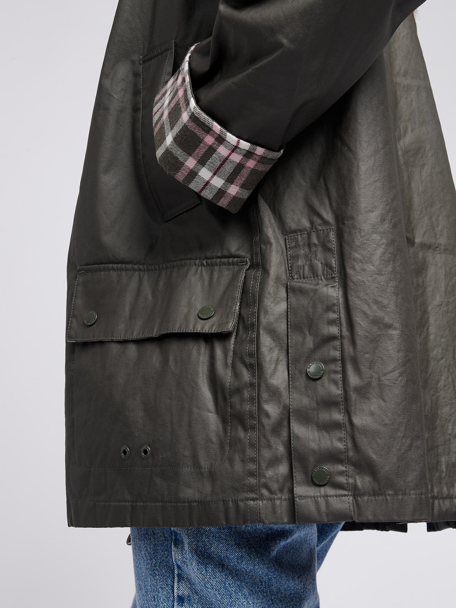 - Relaxed fit in waxed cotton