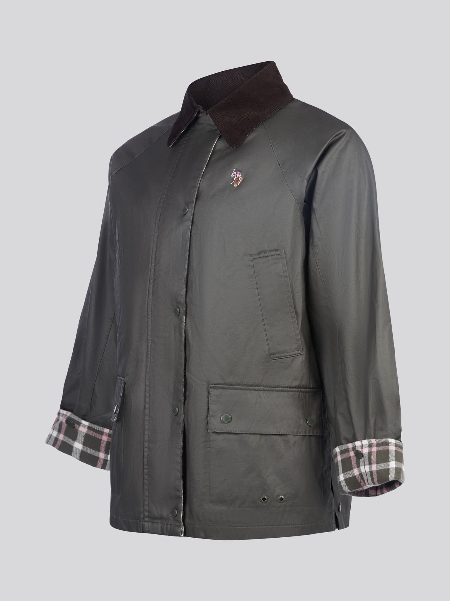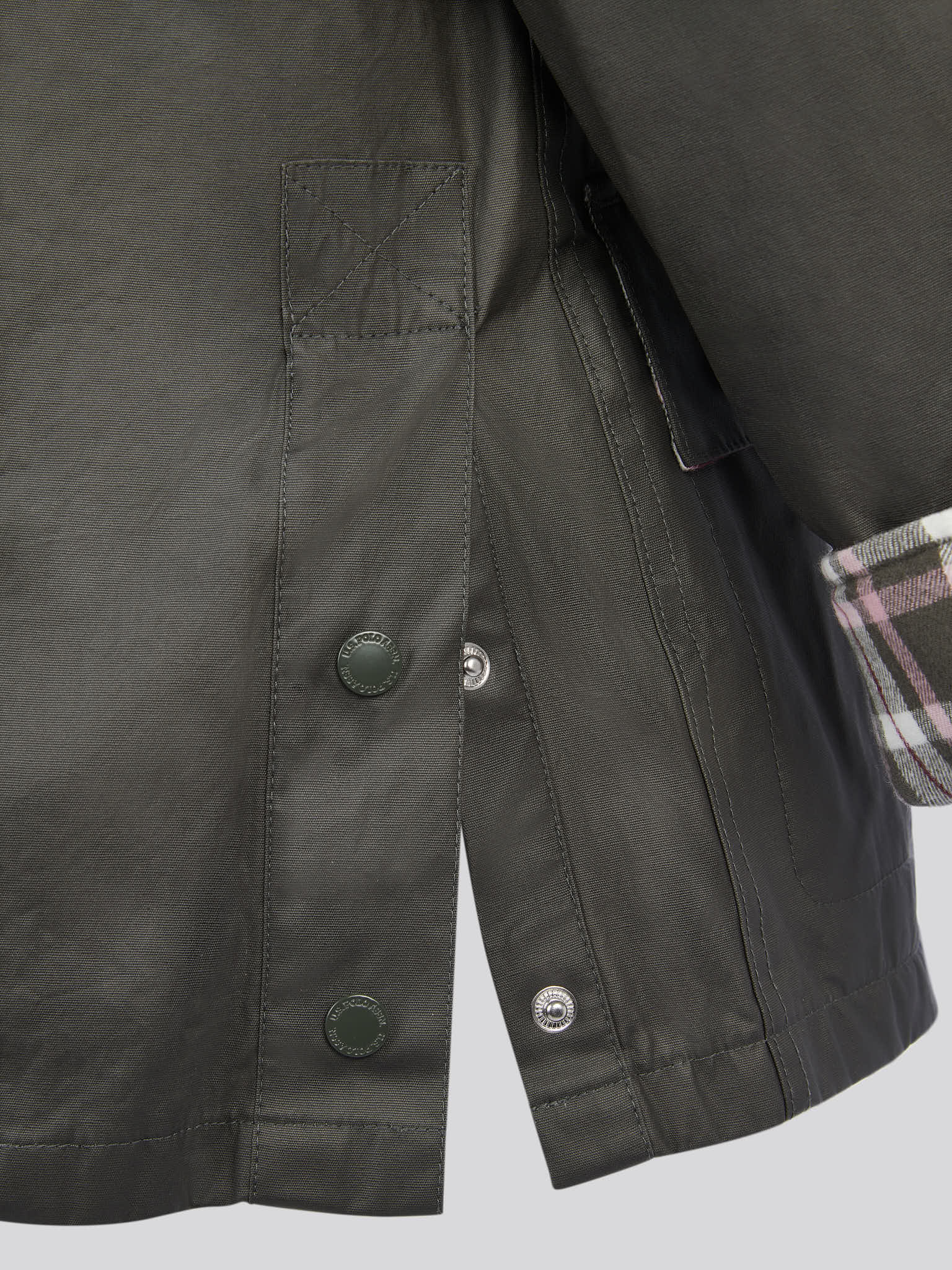 - Back vents and cuffs with poppers