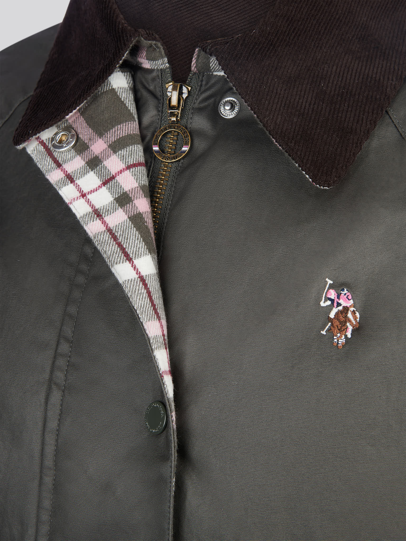 - Branded popper and zip fastenings
