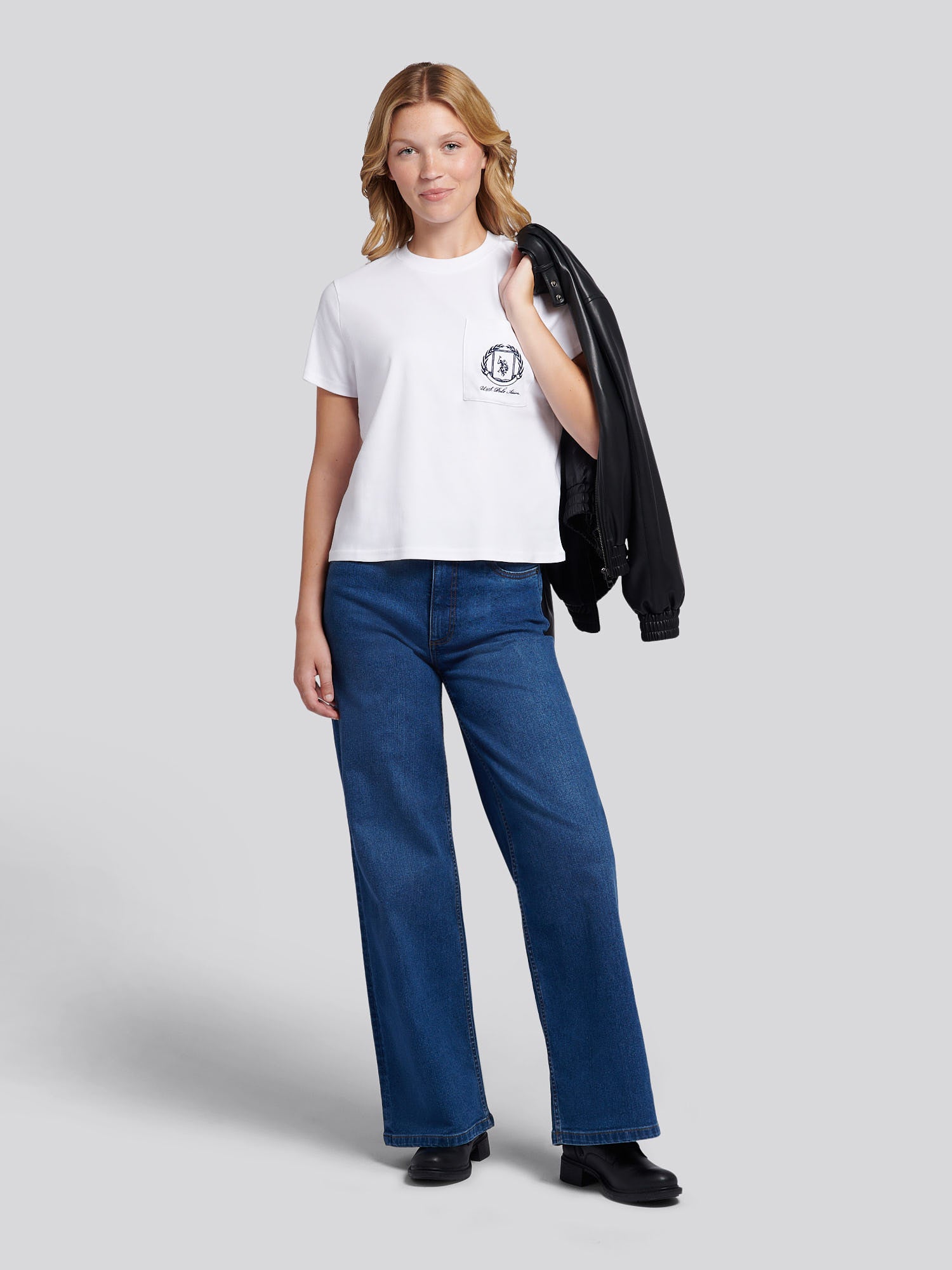 Embodying understated charm, the U.S. Polo Assn. Womens Wreath Graphic T-Shirt is a refined take on an everyday essential. The soft base is elevated by a crest-inspired chest embroidery, adding a nod to the brand’s sporting heritage. Style it with relaxed chinos or tucked into a pleated skirt for a versatile, preppy finish.
